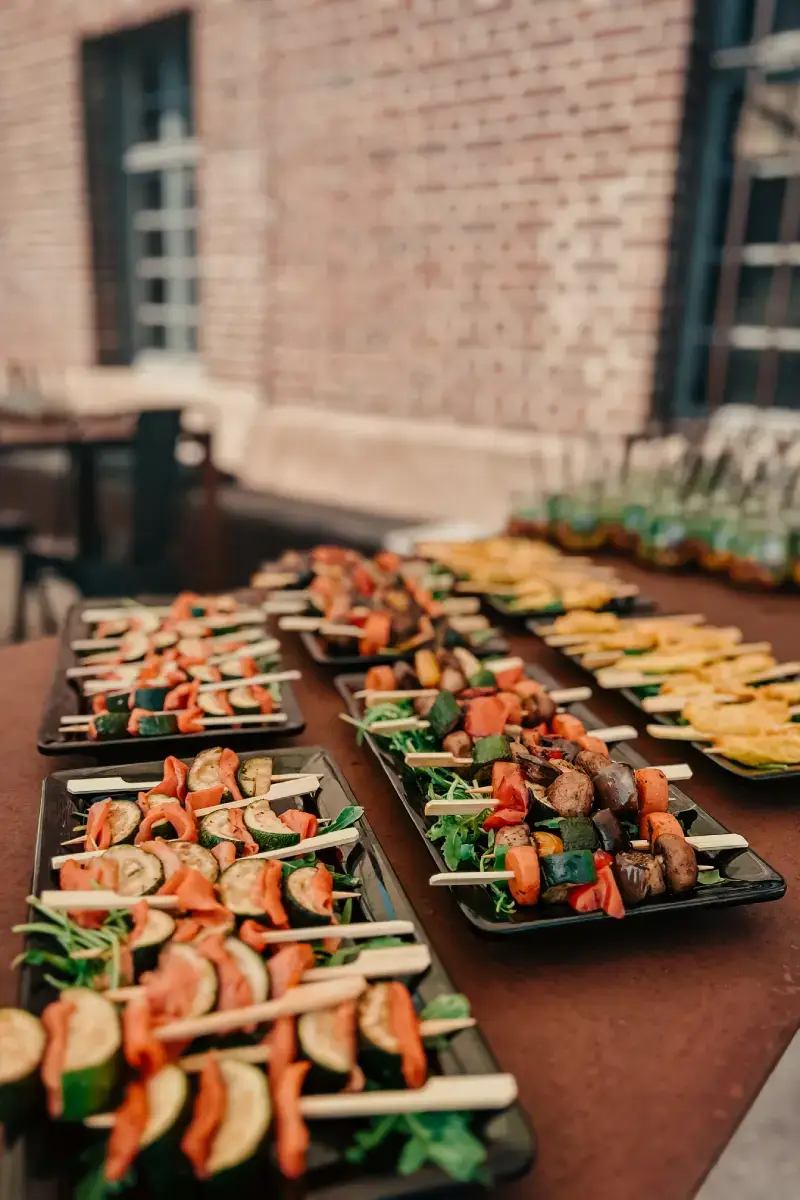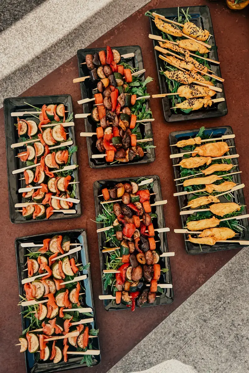 Von Flying Food, Buffet, gesetztes Dinner, Bar-Catering oder Kombinationen daraus.